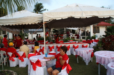 Anfang Februar 2013 kamen dann noch rechtzeitig zu der großen Feier Lulu`s Schwestern Alice und Nida mit Franz aus Deutschland und Östereich, Lulu`s älterer Bruder Samuel mit Frau aus Luzon, Lulu`s älteste Schwester Nicing aus Cebu und einige Cousinen und Nichten aus Chicago, San Diego und Cebu. Mit den anderen Gästen hier aus Ronda und der Nachbarschaft, Freunde aus Moalboal und Badian waren mehr als 100 Leute der Einladung gefolgt.